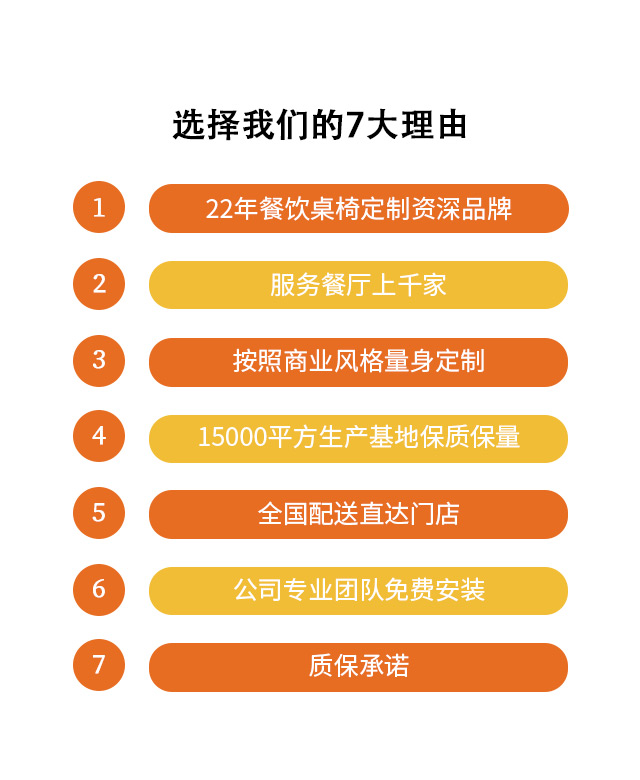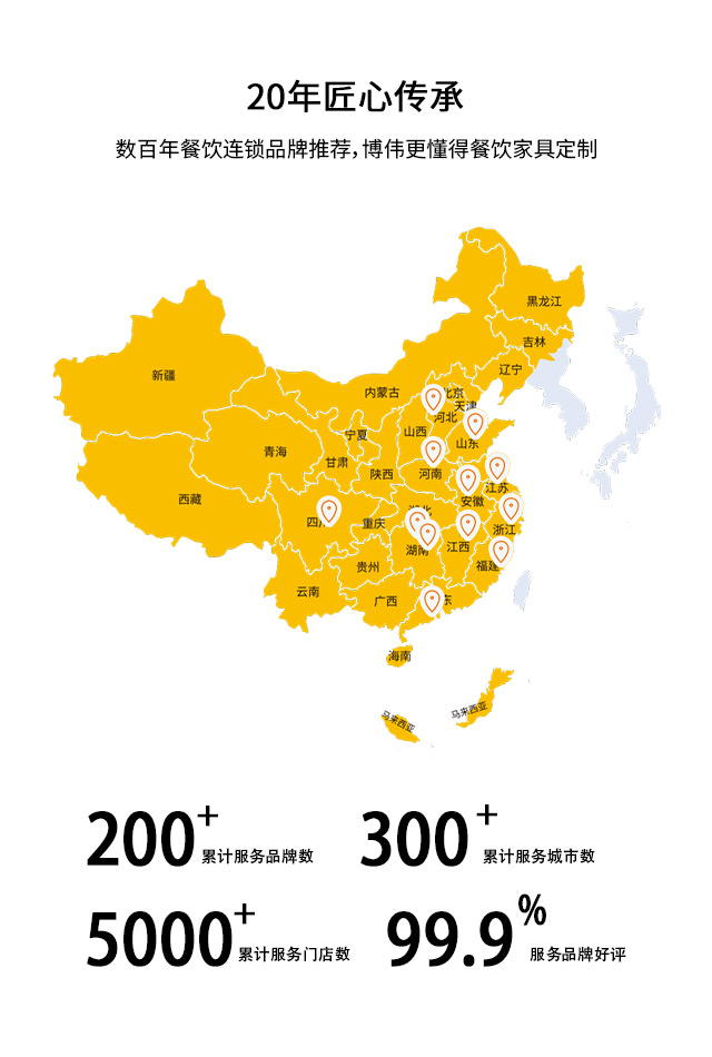 博偉餐飲家具專(zhuān)業(yè)服務(wù)餐飲家具20余年,先后服務(wù)1000+連鎖餐飲,業(yè)務(wù)覆蓋10多個(gè)省份300+城市,用好原料做好桌椅,全國(guó)質(zhì)保,注重品質(zhì)服務(wù)。
